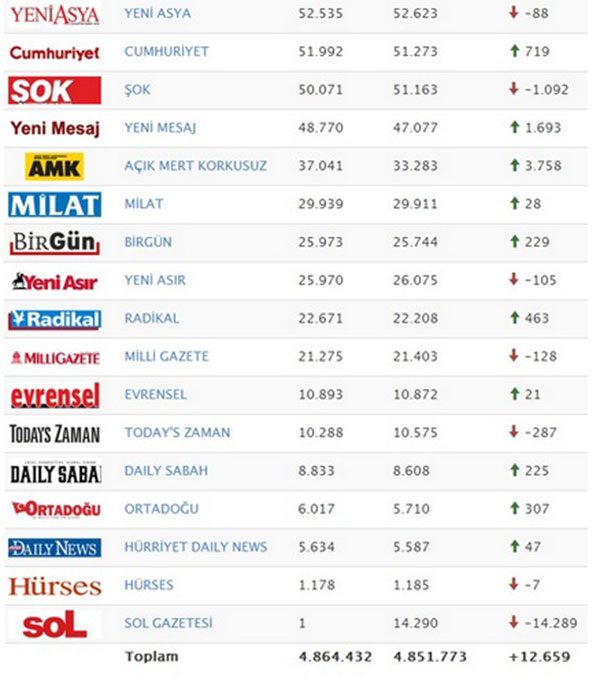 Yaz aylarının başlaması nedeniyle gazete tirajları düşüyor. Ancak Sözcü Gazetesi yine halkın güveni sayesinde tiraj artırmaya devam etti. Bayi satış istatistikleri incelendiğinde gazetemiz 9 - 16 Haziran haftasında tirajını 8 bin 236 adet artırarak 350 bin 661 rakamına ulaştı. Sözcü, Posta ve Hürriyet'in ardından Türkiye'nin en çok satın alınan gazetesi oldu. İşte bu haftaki tiraj istatistikleri: