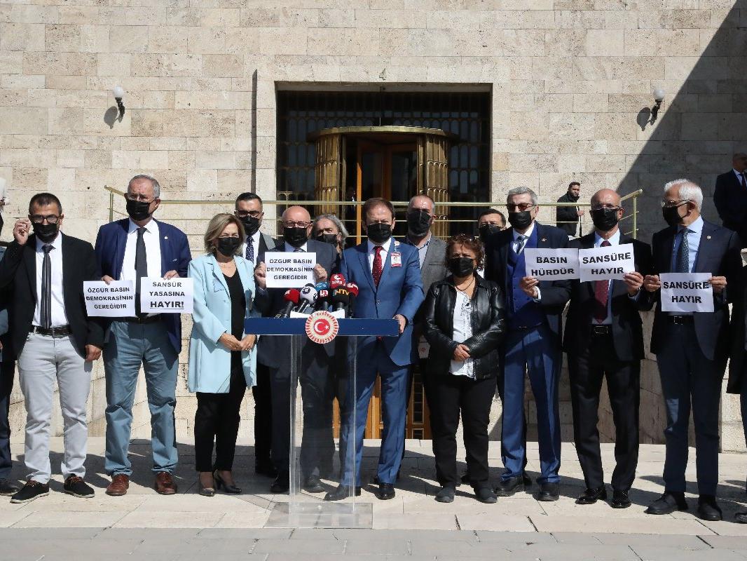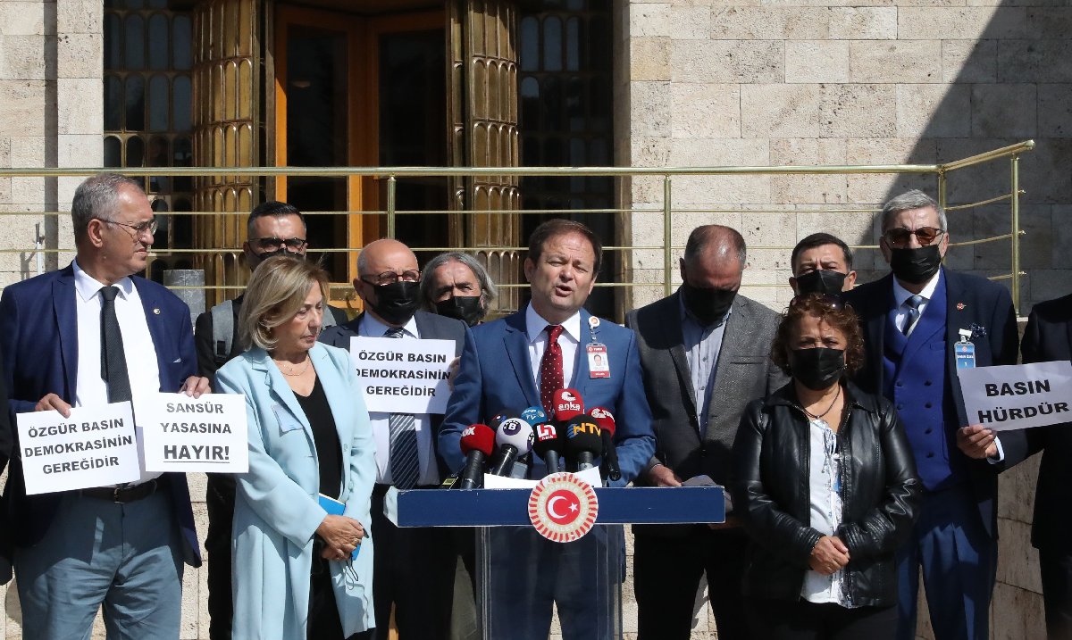 Kamuoyunda ‘dezenformasyon yasası’ olarak da bilinen sosyal medya düzenlemesine karşı Basın Konseyi, Çağdaş Gazeteciler Derneği, Diplomasi Muhabirleri Derneği, Ekonomi Muhabirleri Derneği, Gazeteciler Cemiyeti, Haber-Sen, İzmir Gazeteciler Cemiyeti, Parlamento Muhabirleri Derneği, Türkiye Foto Muhabirleri Derneği ile Türkiye Gazeteciler Sendikası ortak açıklama yaparak itirazlarını dile getirdiler. TBMM Ana Binası basın girişi önündeki açıklamada itirazlar şu şekilde açıklandı:
