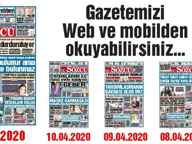 Bakkal ve marketlerin kapalı olmasından dolayı gazetelerin dağıtımı yapılamamıştır. Bugünkü Sözcü gazetesini okumak isteyenler e-gazeteye, buradan ulaşabilirler...