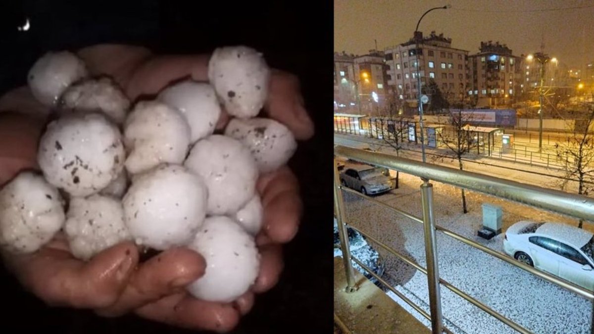 Meteoroloji'nin şiddetli yağmur ve yüksek kesimlerde kar yağışı uyarısı yaptığı Gaziantep’te akşam saatlerinde başlayan yağmur saat 23.20 sıralarında şiddetli yağmur, ardından da doluya dönüştü.