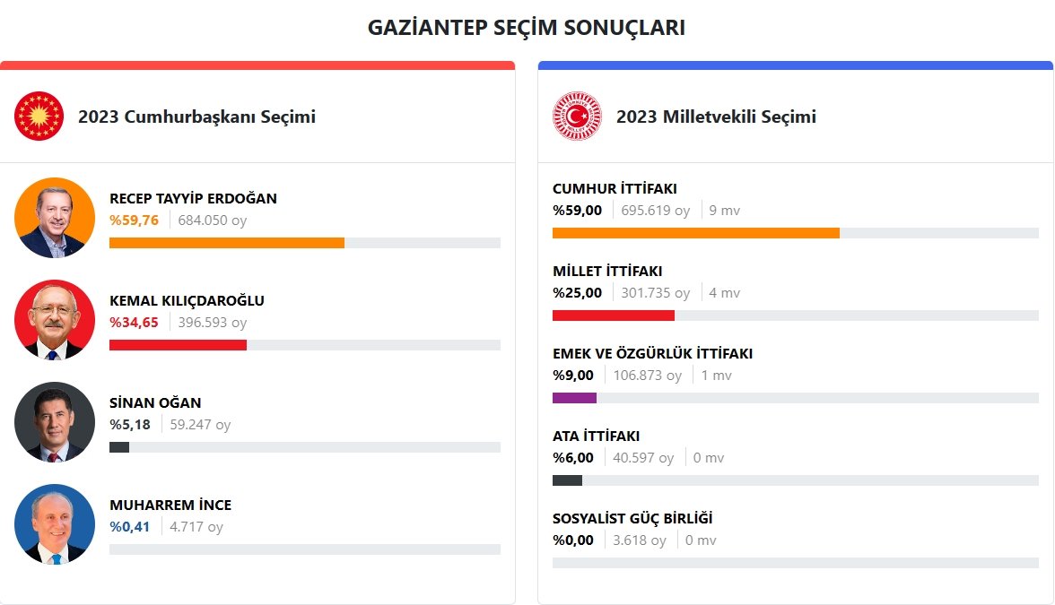 İlk turda seçim sonuçları, Gaziantep'te ne oldu?