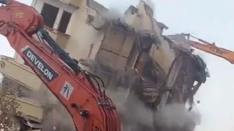 Boşaltılan binanın yıkımı için ekipler çalışmaya başladı. İş makineleriyle yapılan kontrollü yıkım sırasında bina aniden çöktü. Çevreyi toz bulutu sararken, binanın büyük bir gürültüyle çökmesiyse çevredekiler tarafından cep telefonu kamerasıyla kaydedildi.