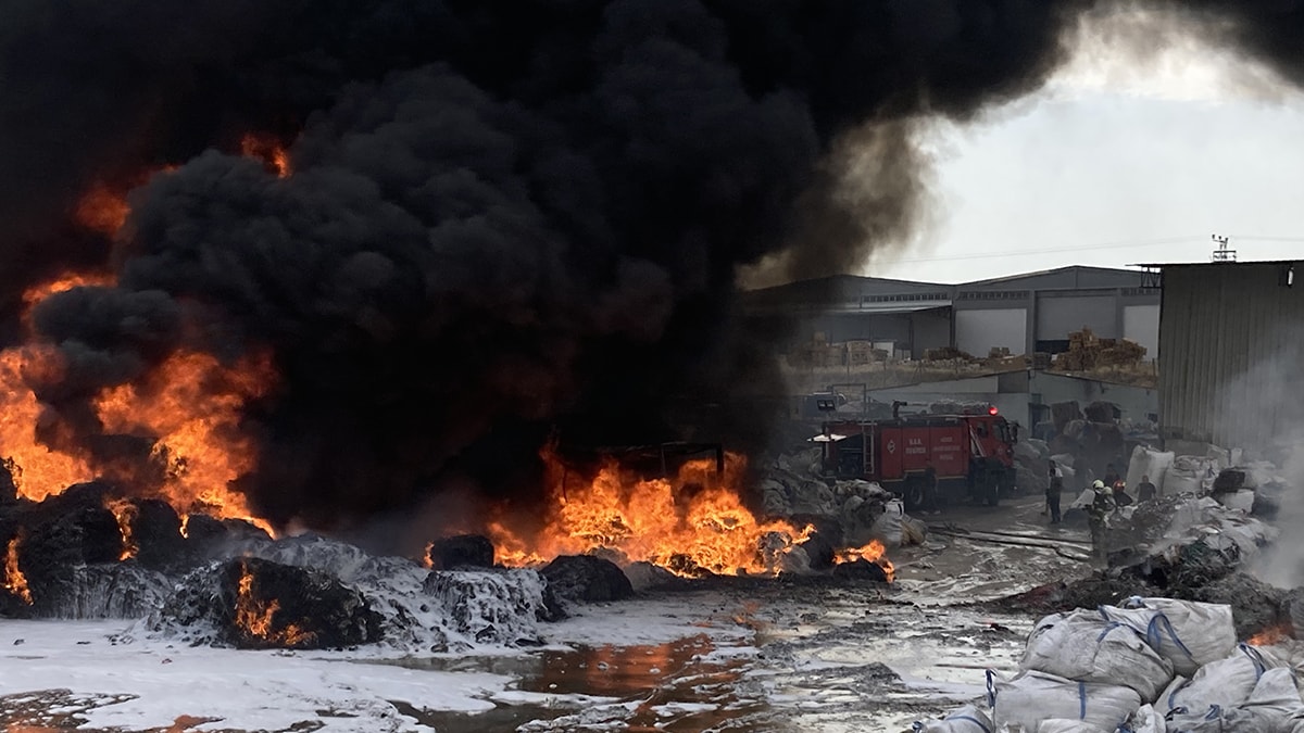 Kırsal Bedirköy Mahallesi yakınlarında faaliyet gösteren geri dönüşüm tesisinde, henüz bilinmeyen nedenle yangın çıktı.