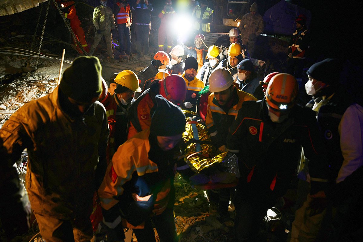 Zamana karşı hayat mücadelesi veren ekipler, ulaştıkları Sibel Kaya'yı enkazdan 170 saat sonra sağ çıkardı. Ambulansa alınan Kaya, hastaneye kaldırıldı. (AA)