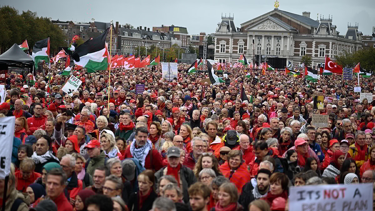 Sadece Türkiye’de değil dünyanın birçok kentinde Gazze’ye destek eylemleri düzenlendi. Hollanda’nın başkenti Amsterdam’da binlerce gösterici, İsrail’in Gazze’ye yönelik saldırılarının durdurulmasını istedi. “Kırmızı Hat” adıyla düzenlenen protestoda eylemciler, Hollanda hükümetini İsrail’in saldırılarına karşı yeterli tepki göstermemekle eleştirdi.