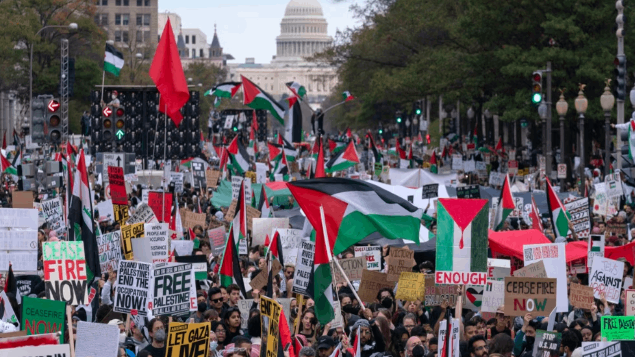 Filistin'de Adalet İçin Chicago Koalisyonu tarafından Michigan Avenue’de Cumartesi günü organize edilen eyleme, ABD Filistin Topluluk Ağı (USPCN) ve Filistin İçin Amerikan Müslümanlar (AMP) gibi çok sayıda sivil toplum kuruluşu da katıldı.