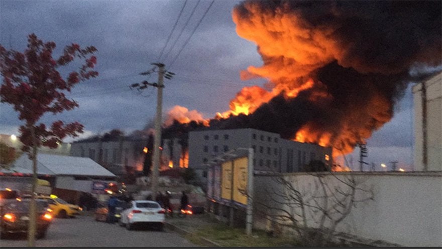 Fabrika içerisinde ufak çaplı devam eden yangına müdahale sürüyor.