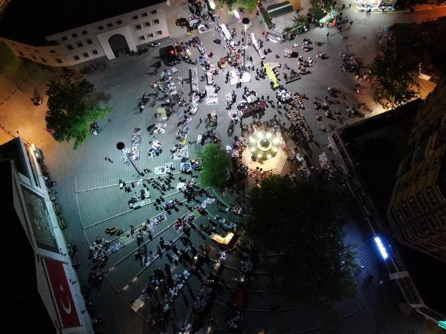 Vatandaşlar yiyecek ve giyim reyonlarında yoğunluk oluşturdu. Yaşanan insan yoğunluğu ise drone ile havadan görüntülendi.