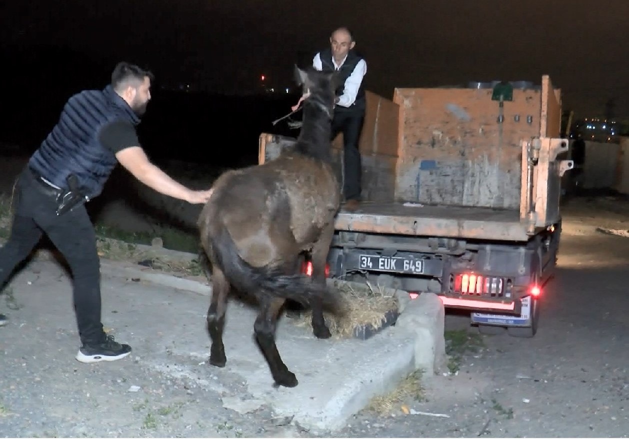 Sultangazi Belediyesine ait zabıta ekipleri kesilmekten son anda kurtulan 3 canlı atı koruma altına aldı. Kesilmiş at etleri ise imha edilmek üzere götürüldü.