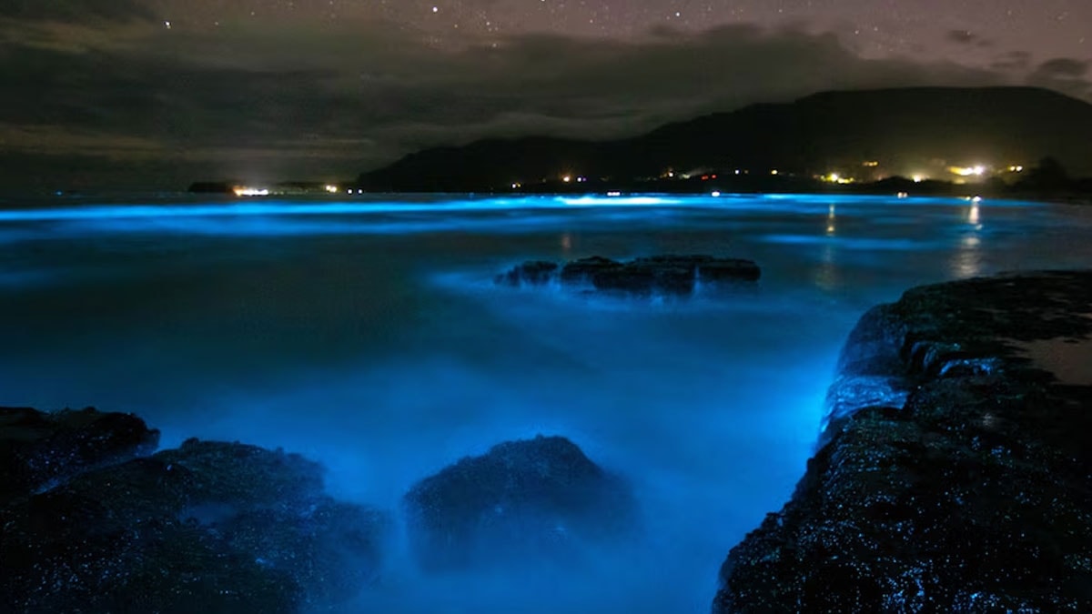 Gündüzleri turkuaz sular ve yemyeşil ormanlarla çevrili sahil, doğaseverler için yürüyüş yolları ve vahşi yaşamın en güzel örneklerini sunuyor. Fakat karanlık çökünce bambaşka bir manzara ortaya çıkıyor: Deniz yüzeyi mavi, yeşil ve mor tonlarında parıldamaya başlıyor. Bu nadir doğa olayı "biyolüminesans" olarak biliniyor.