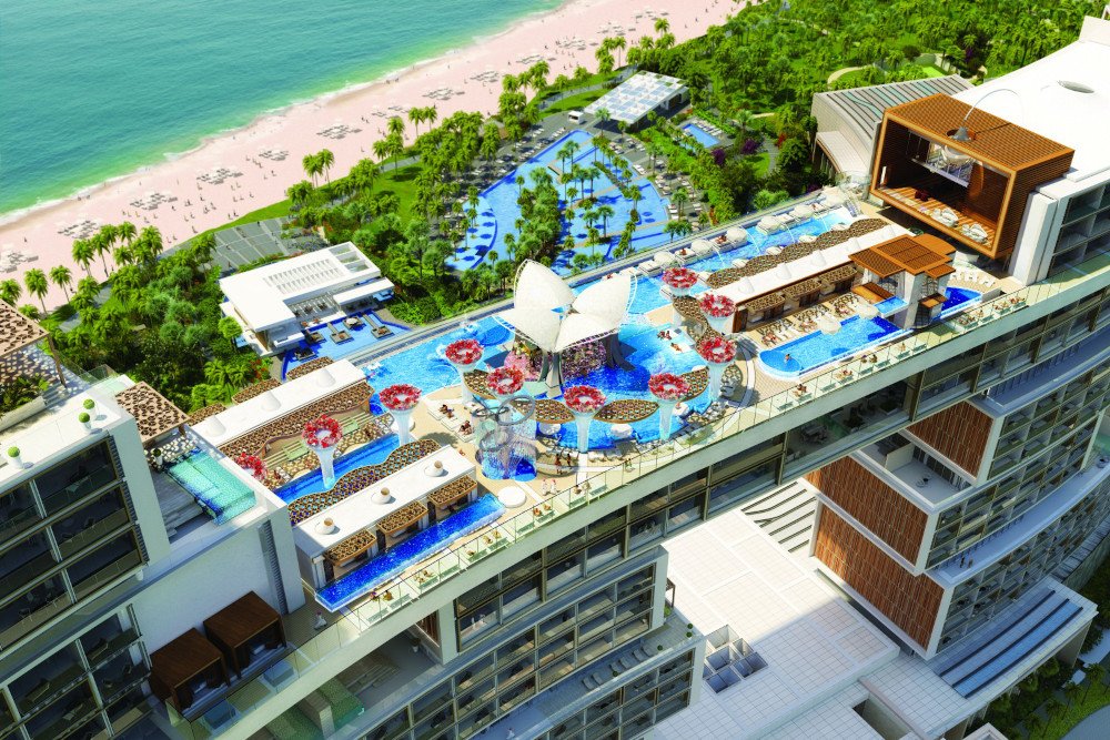 konukların ihtiyaçlarını karşılamak için 3 bin kişi çalışıyor. Otelde bulunan 795 odadan 44'ünde ise yüzlerce metrelik sonsuzluk havuzu bulunuyor.