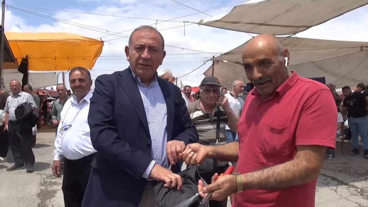 CHP’li Gürsel Tekin ile yaşadıkları sorunları paylaşan vatandaşlar, her gün üst üste gelen zamlara ve uygulanan yanlış politikalara tepki gösterdi. Pazardaki vatandaşlardan biri, artık ikinci el alışveriş yapmak zorunda kaldığının altını çizerek, “Sebep ne? Millette alım gücü kalmadı. Bir ekmek olmuş 7 TL. Almış başını gitmiş. Millet sarayda