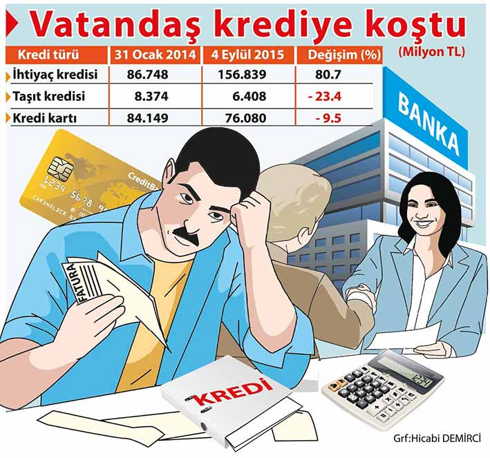 İç talebi kısıtlayıcı bankacılık tedbirlerinin yürürlüğe girdiği tarihten bu yana kredi kartı harcamasında yüzde 9.5 azalma olurken, ihtiyaç kredileri hacmi yüzde 81 arttı