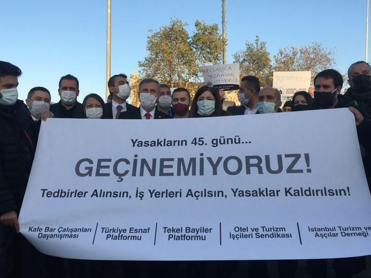 Durumun esnaf açısından da içler acısı olduğunun belirtildiği açıklamada, “İş yerleri kapalı ama kira ödemeye devam ediyorlar. Hükümetin verdiği kira desteği 750 TL. İstanbul’da merkezi yerlerdeki kira bedelleri 10 bin TL’den başlıyor. Verilecek olan kira yardımı, kiraların yüzde 10’u bile değil” ifadeleri kullanıldı. Esnaf ve sektör çalışanları, “Tedbirler alınsın, iş yerleri açılsın, yasaklar kaldırılsın” çağrısı yaptı.