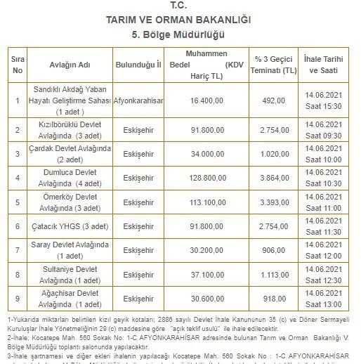 * Çabama karşı ucuz oyunlar beni çok rahatsız etti. Bu yeni bir ihale. 14.06.2021 tarihinde Eskişehir'de kızıl geyiklerin tekrar ihalesi olacak. İhale yeri Afyonkarahisar'dır. Eskişehir'deki 18 kızıl geyik tekrar ihalesi DKMP 5.bölgede yapılacaktır. Vurulup ölecekler ve Eskişehir'de bunu izleyecek... Ne acı.