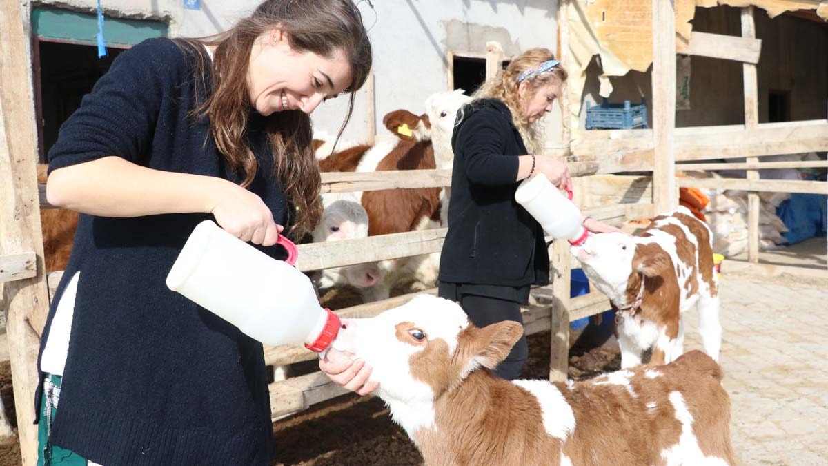 Her sabah erken saatte kalkıp buzağılarına süt veren, danaları besleyen, hayvanların temizliğine özen gösteren ve "Hastalıktan Ari İşletme Destekleme Belgesi" de alan gelin görümce, girişimcilere de örnek oluyor.