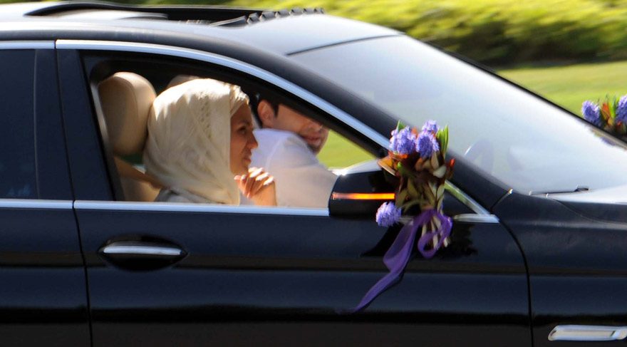 Cumhurbaşkanı Recep Tayyip Erdoğan'ın kızı Sümeyye Erdoğan ve nişanlısı Selçuk Bayraktar'ın içinde bulunduğu gelin arabası sabah saat 11:30 sıralarında Tarabya'daki Huber Köşkü'nden çıktı. Gelin arabasını Selçuk Bayraktar kullanırken Sümeyye Erdoğan'ın ise yan koltukta oturduğu görüldü. Gelin arabası süslenirken şatafattan kaçınılması dikkat çekti. Arabada süs olarak sadece yan dikiz aynalarında birer demet çiçek bulunduğu gözlendi.