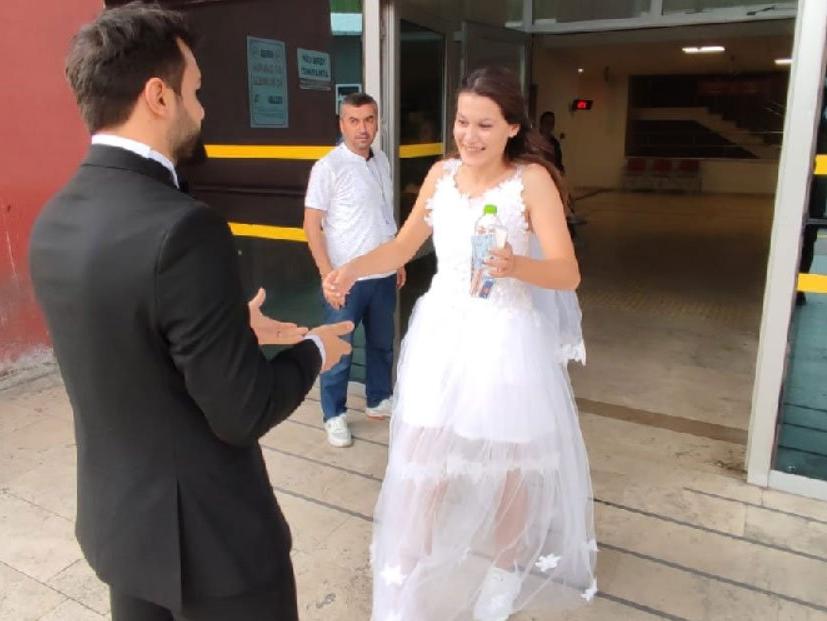 Gelinliği ile sınava girdi, damat kapıda bekledi