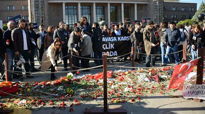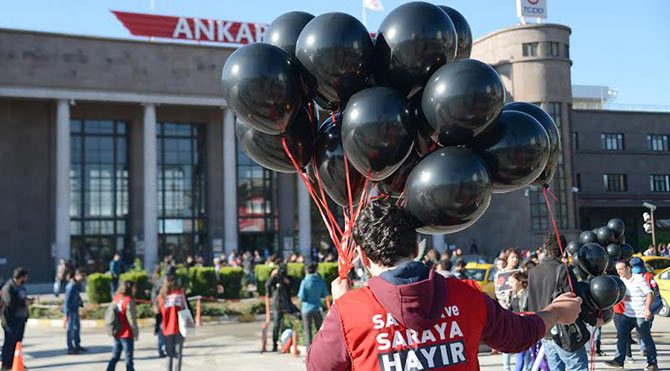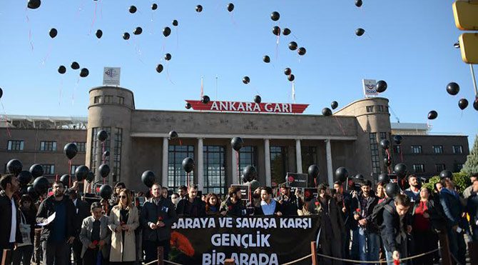Ankara tren garı önünde katliamın yaşandığı alanda toplanan gençler, "Saraya Ve Savaşa Karşı Gençlik Bir Arada" pankartı açtı. Havaya siyah balonlar bırakıldı. Gençler ellerinde taşıdıkları karanfil ve pankartları da olay yerine bıraktı. Gençler İstanbul'da polis kurşunu ile ölen Dilek Doğan'ın resmini de yakalarında taşıdı.