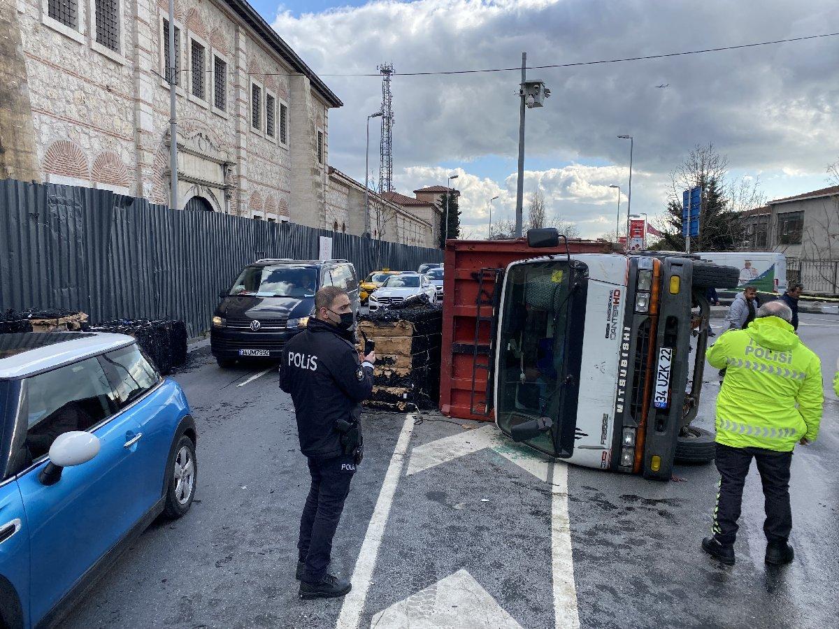 Kamyonun kasasında bulunan plastik hammaddeler yola saçıldı. Kamyon sürücüsü Hasan Kuru ve yan koltukta oturan şirket çalışanı kazayı yara almadan atlattı. Sürücünün ihbarı üzerine olay yerine polis ve itfaiye ekipleri sevk edildi.