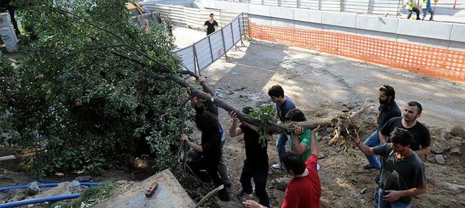 Taksim Meydanı Yayalaştırma Projesi kapsamında yol inşaatı sırasında Gezi Parkı’nın Asker Ocağı Caddesi yönünde 4 metre genişliğinde bulunan bölümde duvarın yıkılıp, hafriyat yapılması bir grup aktivistin tepkisini çekti.