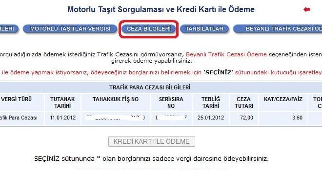 Trafik cezası ödeme ekranı aracılığı ile yapılan ödeme işlemlerinde kişilerin kredi kartı bilgilerini girmesi yeterlidir. Böylece mevut tüm cezalar kredi kartı limitinden tahsil edilecek ve trafik cezaları ödenecektir. GİB trafik cezası ödeme ekranı dışında trafik cezası ödeme konusunda bankaların online bankacılık sistemleri de kullanılabilmektedir.