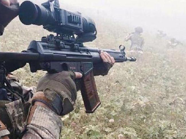 Bu sırada askeri birliğin güvenliğini sağlayan kobra tipi zırhlı araçtaki askerler ormanlık alanda hareketlilik fark etti, bölgeyi ateş altına aldı.