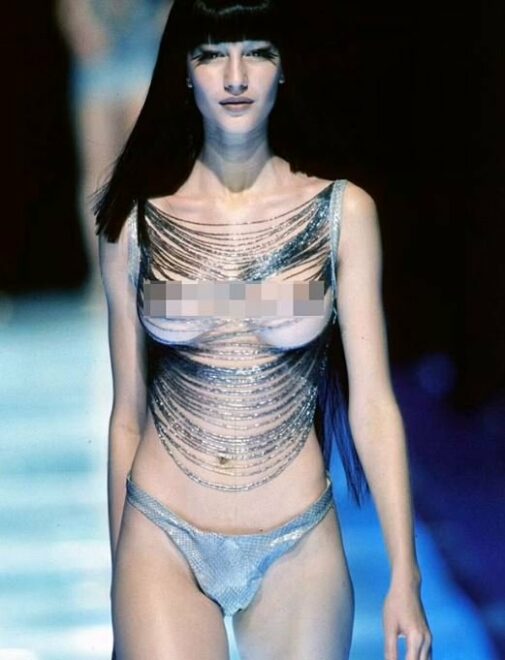 Alexander McQueen'in bir defilesinde göğüslerini açıkta bırakan gümüş rengi bir kıyafeti giymesi gerektiği için "travma" yaşadığını belirtti.
