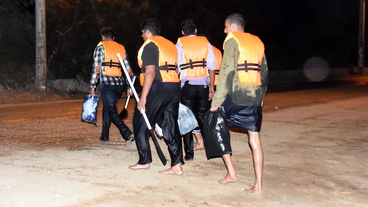 Bir grup göçmen ise sabaha karşı marketten aldıkları lastik bot ile umuda yolculuğa çıkacakları sırada botun patlak olması üzerine denize açılamadı.