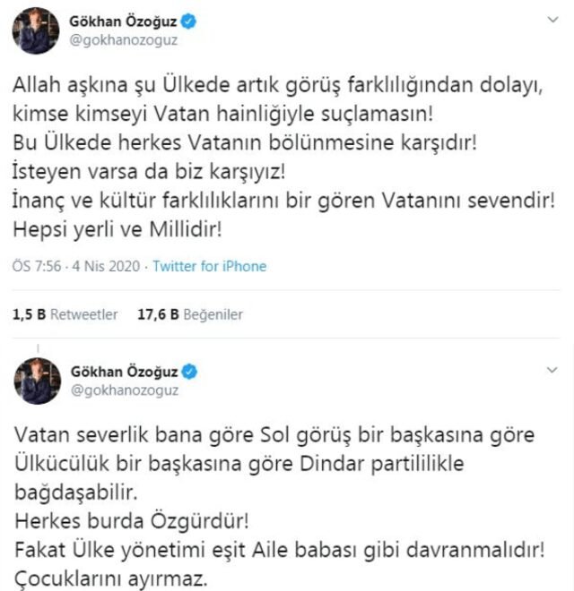 Athena grubunun solisti Gökhan Özoğuz, yaptığı paylaşımlardan sonra kendisine vatan haini diyenlere tepki gösterdi. Twitter hesabından yaptığı açıklama ile kimsenin vatan haini olmadığını söyleyen Özoğuz "Allah aşkına, şu ülkede görüş farklılığı nedeniyle kimse kimseyi vatan hainliği ile suçlamasın. Bu ülkede herkes vatanın bölünmesine karşıdır. İsteyen varsa da biz karşıyız. İnanç ve kültür farklılıklarını bir göre, vatan severdir. Hepsi yerli ve millidir” dedi.