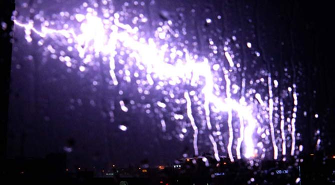 İstanbul'da birçok yere yıldırım düşerken, gök gürültüsü uzun süre devam etti.