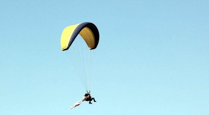 MUĞLA'nın Fethiye İlçesi'ndeki, dünyaca ünlü yamaç paraşütü merkezi Babadağ'dan, yamaç paraşütüyle havalanan AK Parti Fethiye Gençlik Kolları Başkanı Sinan Çengil, gökyüzünde 'İnadına değil, inandığımız için evet' yazılı pankart açtı.