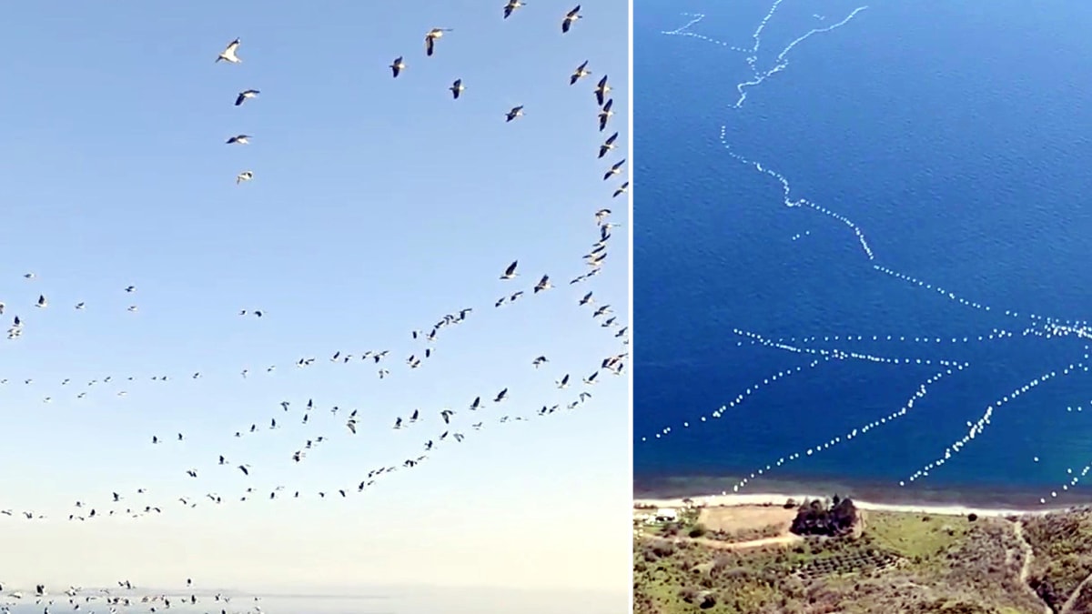 Şarköy ilçesi Uçmakdere mevkisinde göç eden pelikanlar, bir süre semada süzülüp, güzel görüntüler oluşturdu. O anlara tanık olanlar, cep telefonlarıyla pelikanları kaydetti.
