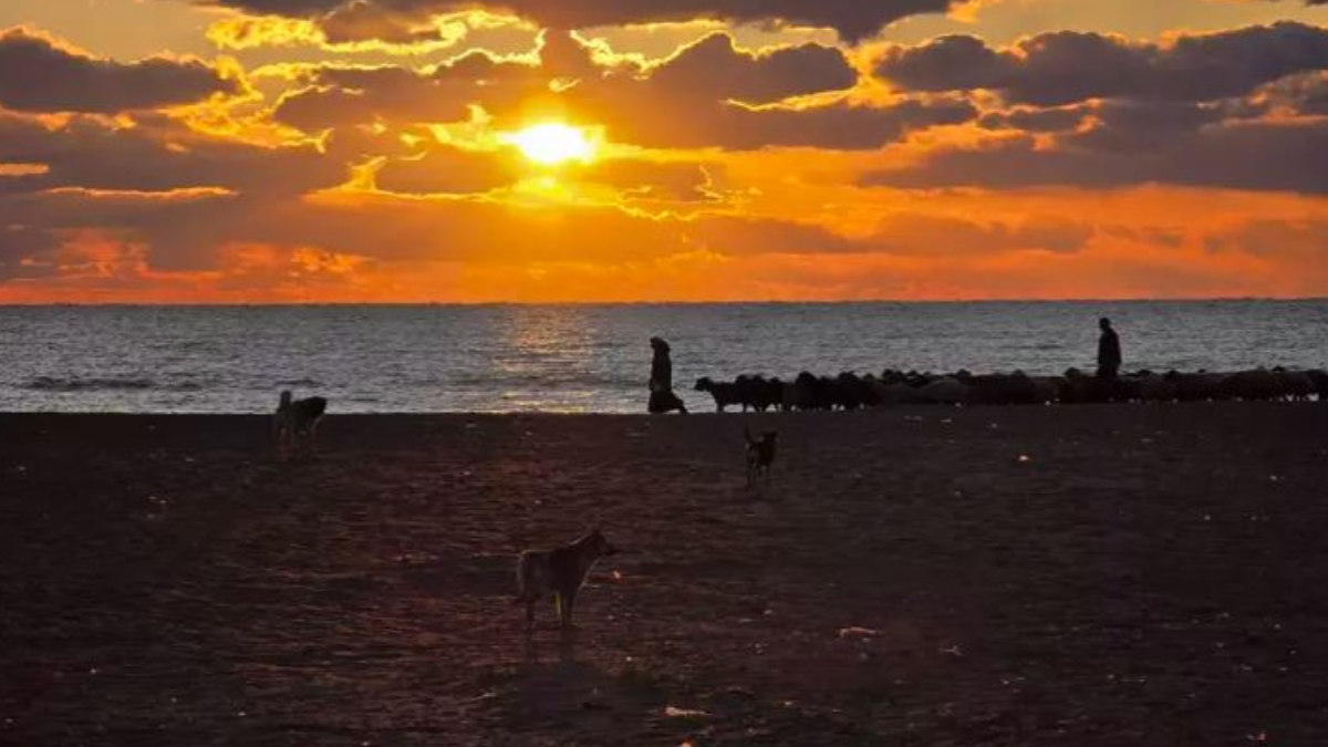 Gökyüzünü gören vatandaşlar, gün batımını izlemek için sahilin yolunu tutarken, bazıları ise fotoğraflar çekilerek o anı ölümsüzleştirdi.
