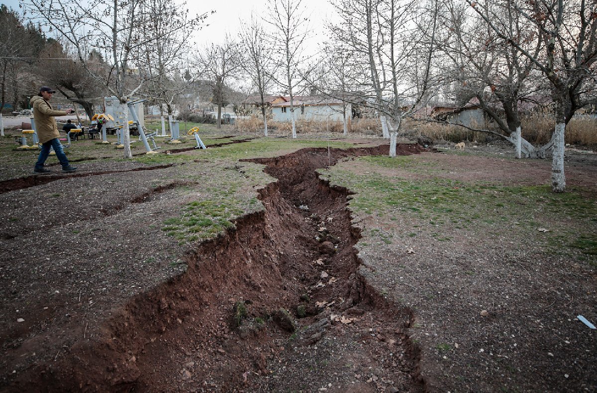 Park kenarındaki arazilerde yarıklar meydana geldi. Parktaki spor aletlerinden bazılarının yarığa düştüğü görüldü. (AA)