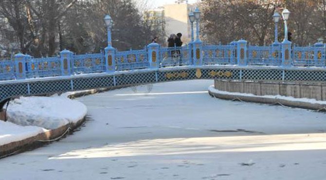 Hava sıcaklığındaki düşüş nedeniyle kent merkezini ikiye bölen Porsuk Çayı da dondu. Karla kaplanan Porsuk Çayı kıyısında çok sayıda kişi hatıra fotoğrafı çekti.