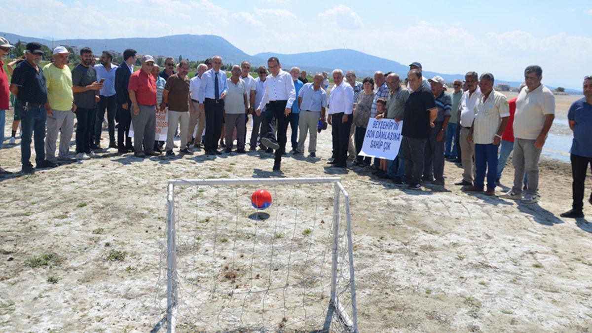 CHP’li heyet Beyşehir Gölünün kurumasının önlenmesi ve sahip çıkılmasının gündemde tutulması amacıyla göl üzerinde penaltı atışı yaparak, dikkat çekici bir eyleme imza attı.