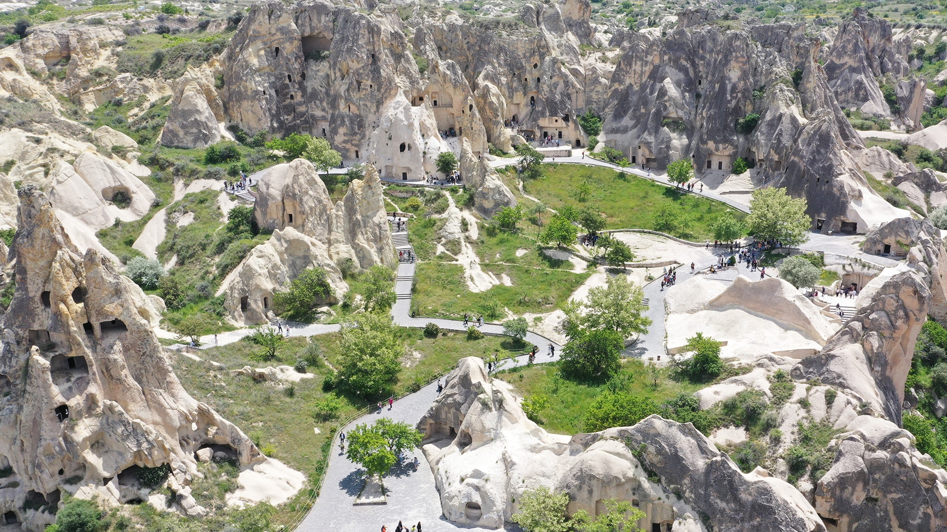 İlk etapta kayadan oyma şapellere sahipken üçüncü yüzyılda Roma İmparatoru 1. Konstantin'in Hristiyanlığı kabul etmesinin ardından bugünkü müze alanında sayısı hızla artan kiliselerdeki iyi korunmuş duvar resimleri, konukların ilgisini çekiyor.