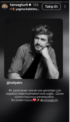 "Bir sanatsever olarak size gönülden çok teşekkür ederim, emeklerinize sağlık. Görev süreniz boyunca şahaneydiniz. Biz sizden razıyız"