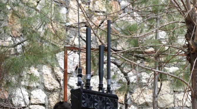 Görmez'in gezisi sırasında, bir polisin sırtındaki frekans karıştırıcı ve sinyal kesici Jammer cihazı taşıdığı görüldü.