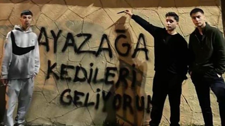 16 yaşındaki Emir Koçhan 'Ayazağa kedileri geliyorum' yazısının yer aldığı duvarın önünde çektirdiği fotoğrafı sosyal medyadan paylaştı.