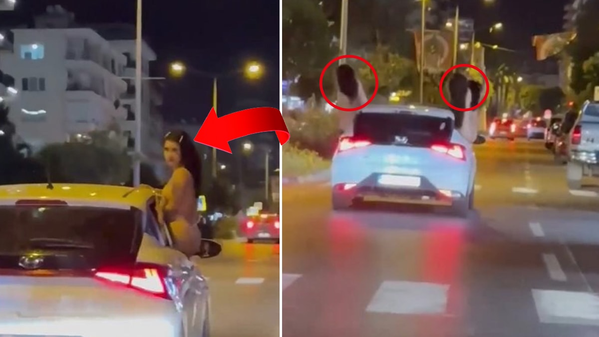 Seyir halindeki bir aracın camından 3 bikinili kadın sarktı.
