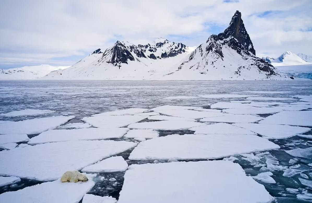 Bu hava çekimi, Norveç'teki doğal ortamında bir kutup ayısını gösteriyor. Fotoğrafçı Javier Lafuente, "ayının önceki zorlu dövüşlerin belirtilerini gösterdiğini" belirtiyor: "Düşük gürültülü pervaneleri olan bir dron kullandım ama asla ayıya çok yaklaşmadım, bu yüzden çekimi kadrajlarken beni görmezden geldi"