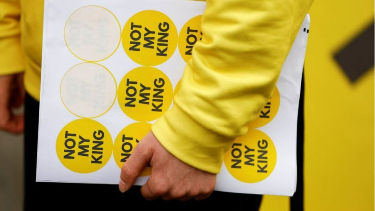 The Guardian'ın haberine göre, monarşi karşıtı gösterilerin yapıldığı Londra'daki Trafalgar Meydanı'nda Cumhuriyetçi hareketin başkanı Smith'e pankart dağıttığı sırada polis müdahale etti.