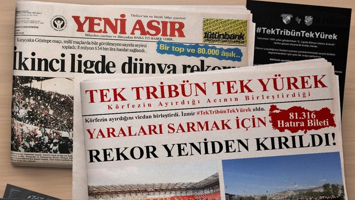 İzmir'in iki ezeli rakibi Göztepe ve Karşıyaka kulüpleri, depremzede vatandaşlarımız için bir araya geldi. Hatıra bileti satışı ile 42 yıllık rekor kırılırken, elde edilen önemli miktardaki para deprem bölgesine aktarılacak.