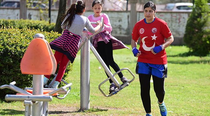 Adı Ayşe Taş. Onu Fox TV’de İsmail Küçükkaya’nın haberlerinde gördüm. Parkta antrenman yapıyor, ağaçlara vuruyordu eldiveniyle! O bir milli boksör; muay thai (kickbox) yapıyor. 15 maçından sadece 1’inde mağlup olmuş 21 yaşında bir genç kız. Liseyi bitirmiş, üniversitede beden eğitimi okumak istiyor. Evlere gündelik temizliğe gidiyor, broşür dağıtıyor.