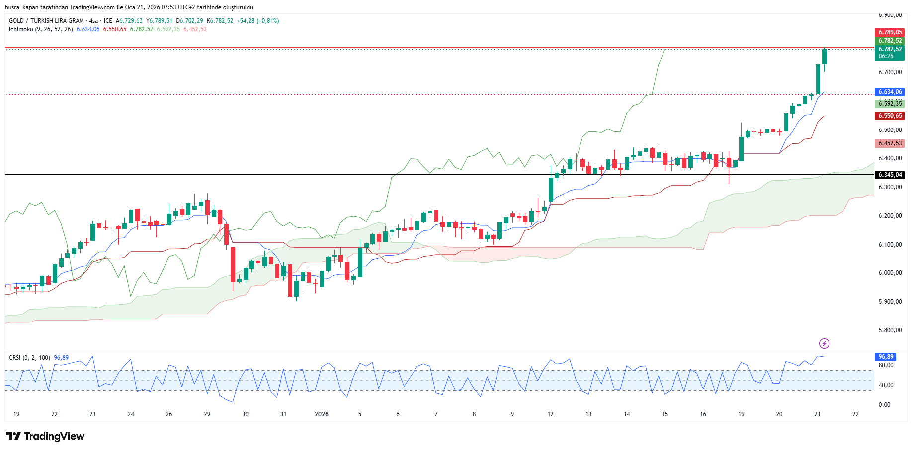 Ons altında görülen yükselişin etkisiyle gram altında da rekor kırılıyor. Gram altın fiyatları sabah seansında 6 bin 779 liraya yükselerek rekor tazeledi. Saat 08.06'da 6 bin 776 liradaydı. Yükselişini sürdüren gram altın saat 08.51'de 6 bin 789 liraya yükseldi.