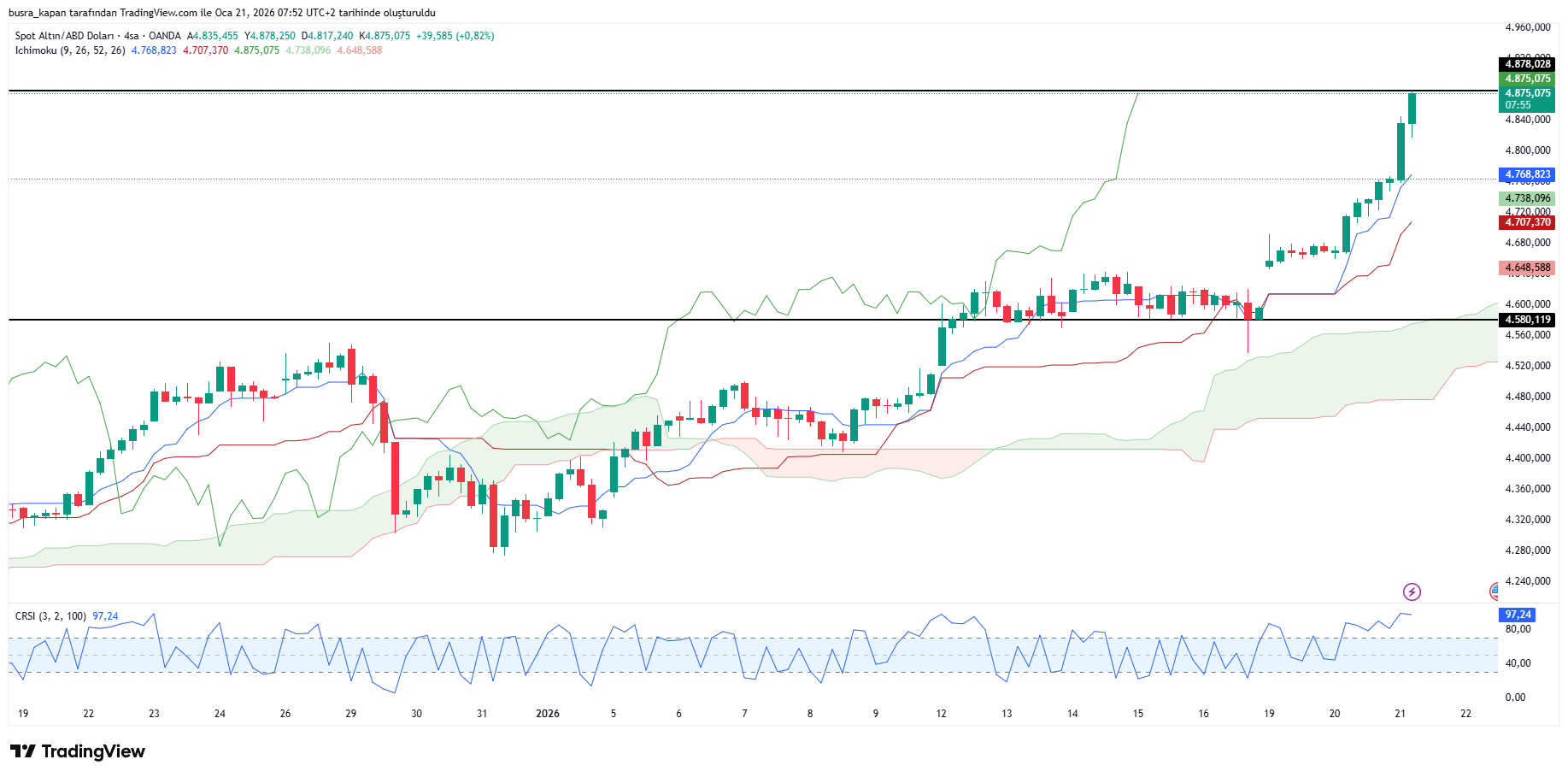 ABD'li bankacılık devi, Morgan Stanley, 2026 için altına yönelik 3 aylık döneme ilişkin beklentisinin 4 bin 800 doları aşacağını belirtmişti. Ancak bankacılık devinin tahmini henüz birinci ayda kırıldı.