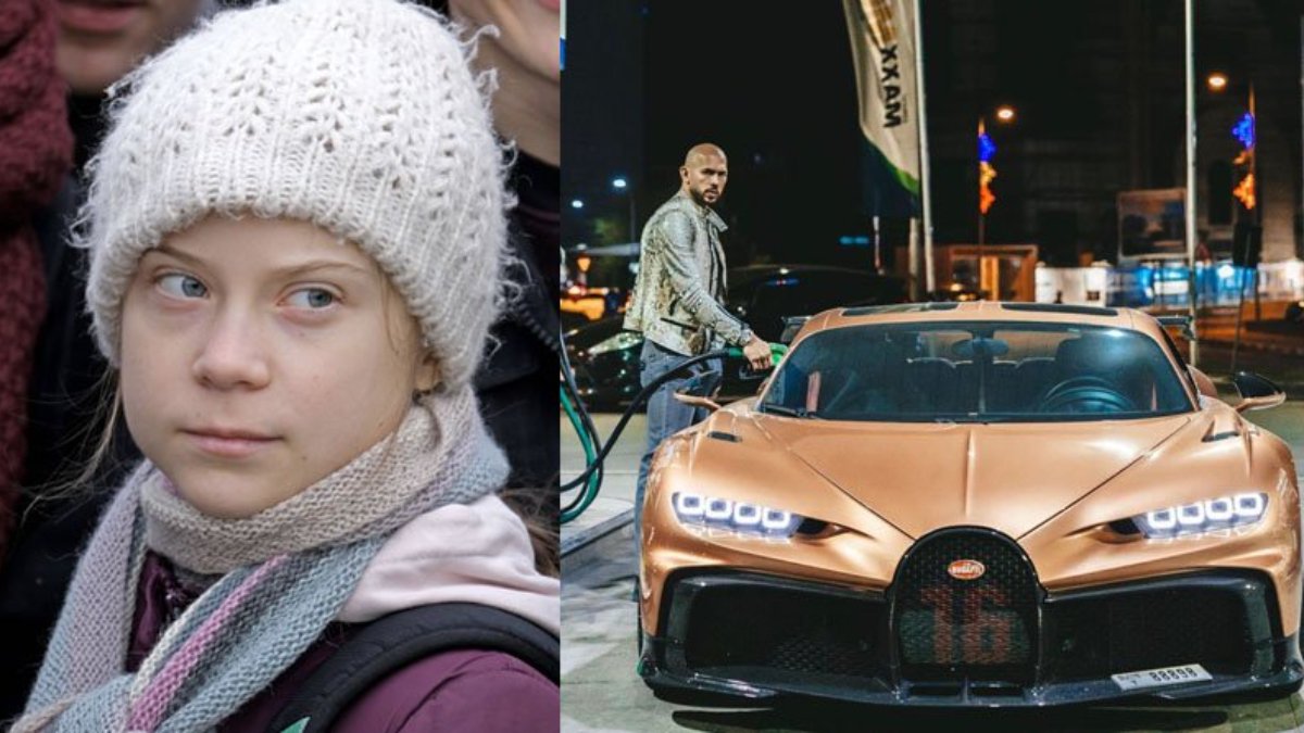 Eski kickboksçu ve şimdinin insan kaçakçılığı, tecavüz, organize suç örgütü kurmak ile suçlanan ismi Andrew Tate, Twitter'dan Greta Thunberg'e hitap ederek, "33 tane arabam var. Bugatti'mde w16 8.0L dörtlü turbo var. İKİ Ferrari aracımda 6.5L v12'ler var. Bu sadece başlangıç. Lütfen e-posta adresini ver, böylece araba koleksiyonumun tam bir listesini ve ilgili muazzam emisyonlarını gönderebilirim" diye yazmıştı.