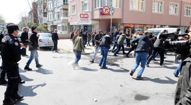 Polisin ikazına rağmen dağılmayanlara, çevik kuvvet ekipleri müdahale etti. Ara sokaklara kaçan bazı eylemciler, yanlarında getirdikleri, havai fişekler ve taşlarla polise saldırdı. Boyalı mermi kullanan çevik kuvvet polisi, 54 kişiyi gözaltına aldı.